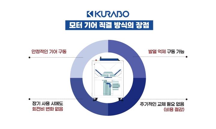 장시간 사용 시에도 회전비의 변화, 벨트로 인한 심한 발열 등의 문제가 없으며