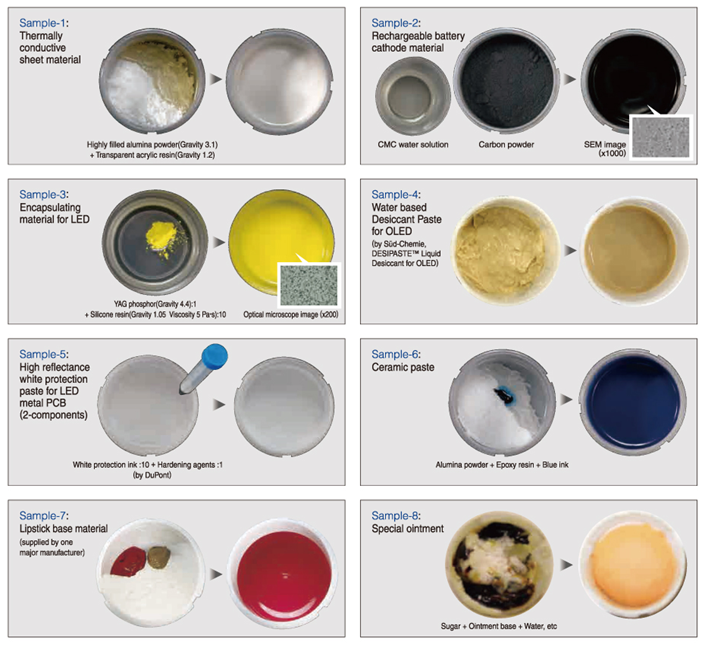유리, 실리콘 수지, 세라믹 등 정밀한 혼합을 필요로 하는 현장에서 다양하게 사용되고 있습니다.