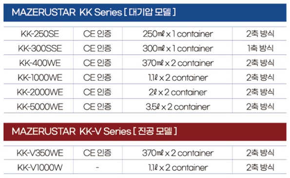 KURABO 공자전교반기 종류 (대기압 / 진공 모델)