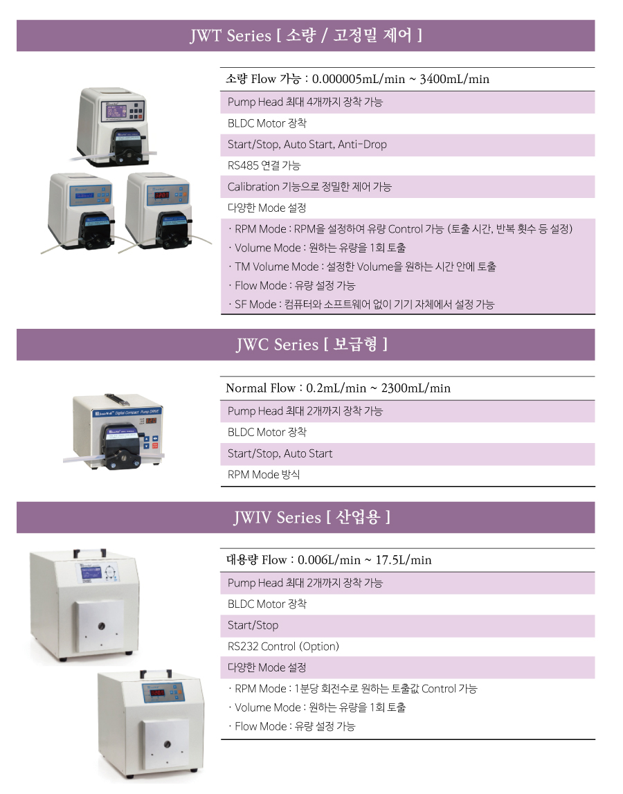 튜빙 정량 펌프 'JenieWell' 모델별 사양