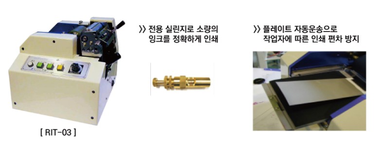 RIT-03은 옵셋 인쇄용 테스트 장비로 공/자전 교반 탈포기에서 처리된 잉크의 품질 및 색상을